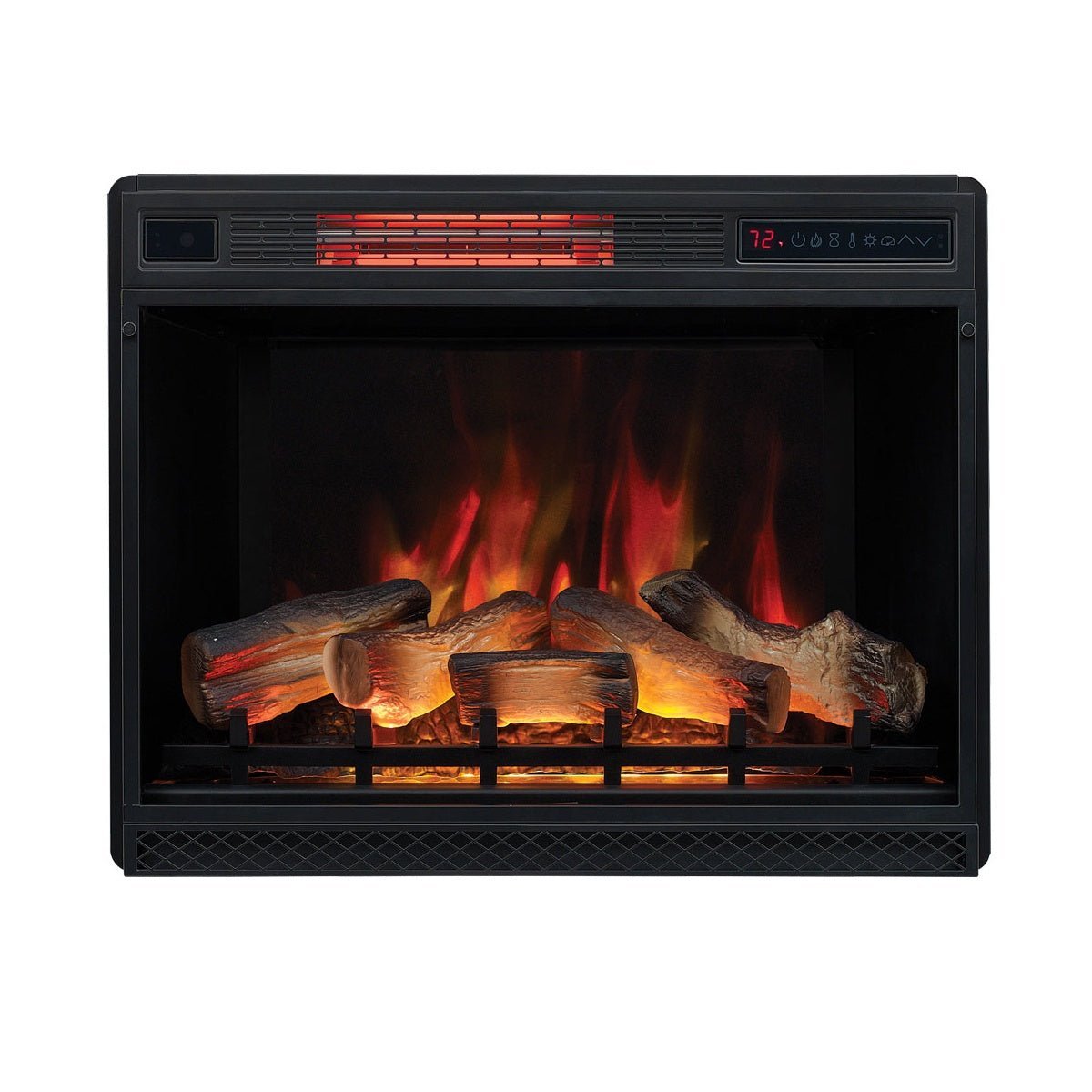 28″ 3-D Infrared Quartz Electric Fireplace Insert has a patent pending 3D flame effect technology and offers a layered flame effect to create a realistic fire with five adjustable brightness and speed settings. The infrared quartz heat helps to maintain the natural humidity in the air, resulting in moist, comfortable heat without drying out the room’s air. 5,200 BTU heater provides supplemental zone heating for a large room.